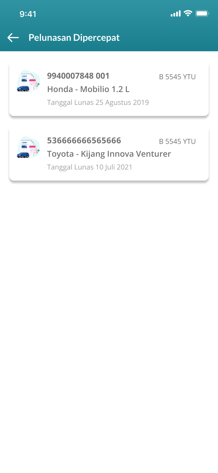 Fitur ini mempermudah kamu mendapatkan simulasi perhitungan kredit yang sesuai dengan kebutuhan dan budget, baik itu mobil baru ataupun mobil bekas. Kamu dapat sekaligus mengajukan pembiayaan, serta memantau proses pengajuannya.