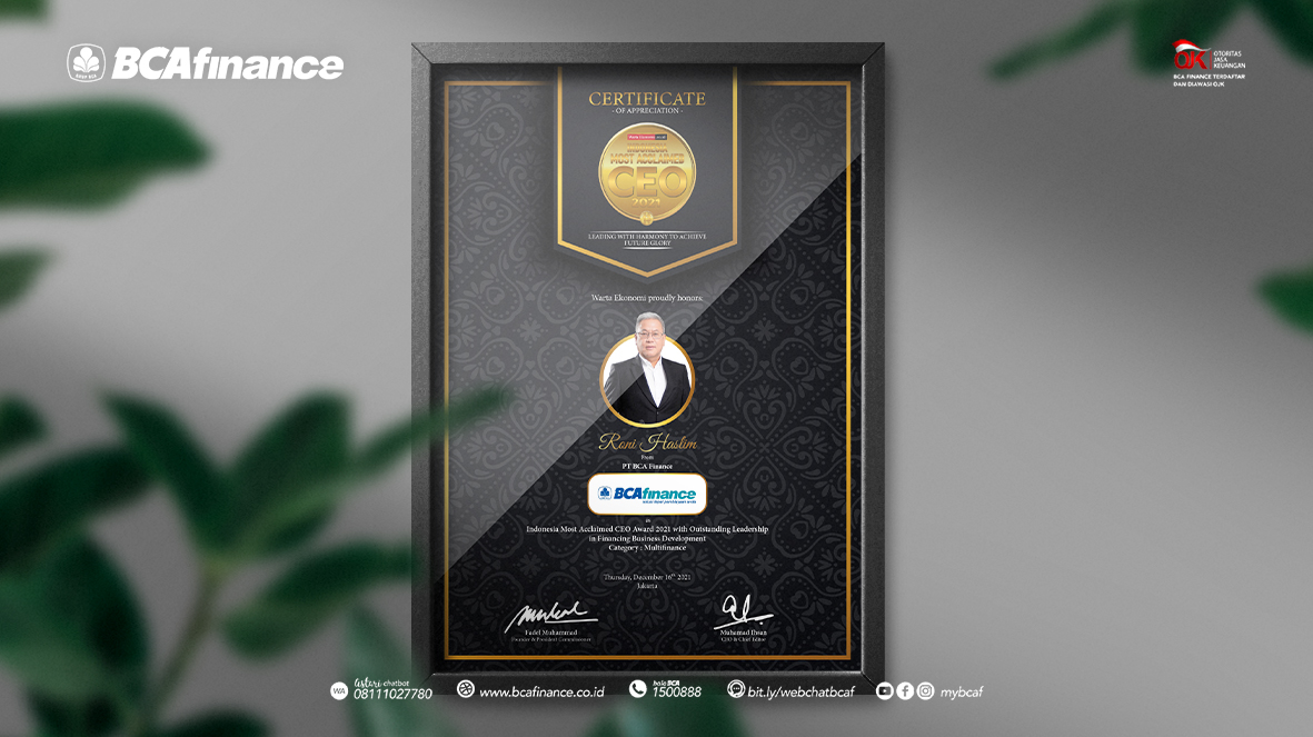 Indonesia Most Admired CEO 2021 with Outstanding Leadership in Financing Business Development (Category : Multifinance)